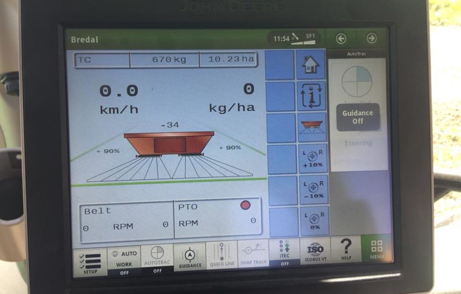Delivery and installation of a new Bredal F4 ISOBUS controlled variable width spreader this week to North Otago.